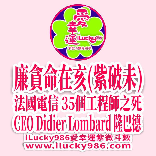 #職場霸凌 #法國電信 #FranchTelecom #Dider_Lombard #隆巴德 #紫微破軍 #財帛宮 #廉貞貪狼 #紫微斗數 #ilucky986愛幸運紫微斗數